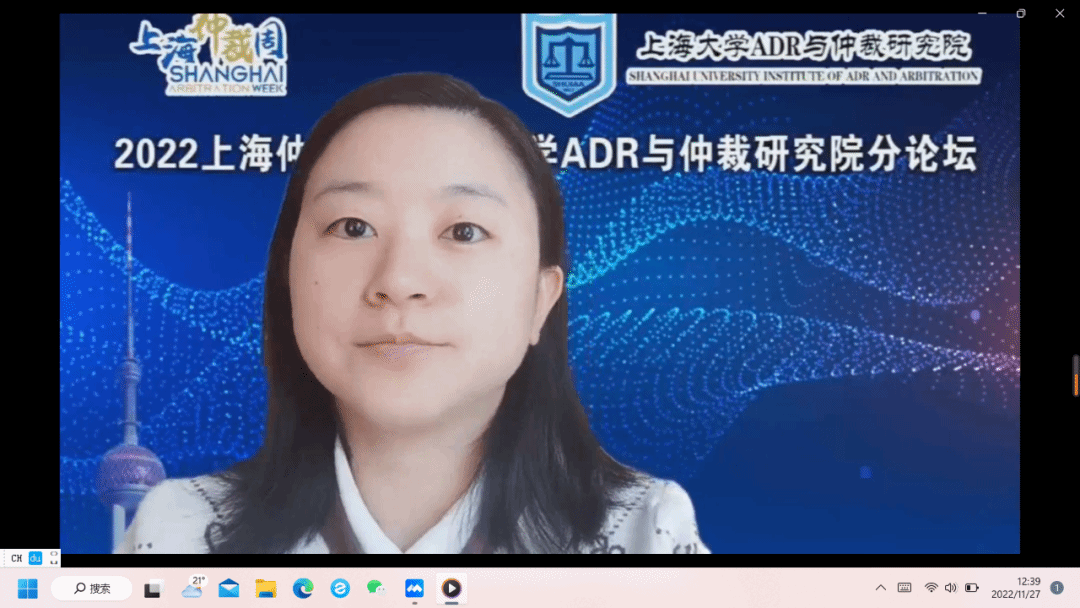太阳成集团ADR与仲裁研究院秘书长袁杜娟副教授的发言题目是“推进高水平对外开放,全力建设上海国际争议解决中心”,她首先讲述了从国际仲裁中心的建设到国际商事争议解决中心的建设表达转变背后的机理,并对上海、深圳、北京争议解决中心建设进行对比;其次阐述了建设国际争议解决中心的必备条件,如人才、法律制度、政府政策支持等;最后从国内法治与国际法治协同发展以及上海仲裁国际化、国际仲裁落地上海等双向发展格局等思路提出了上海国际争议解决中心的建设路径。