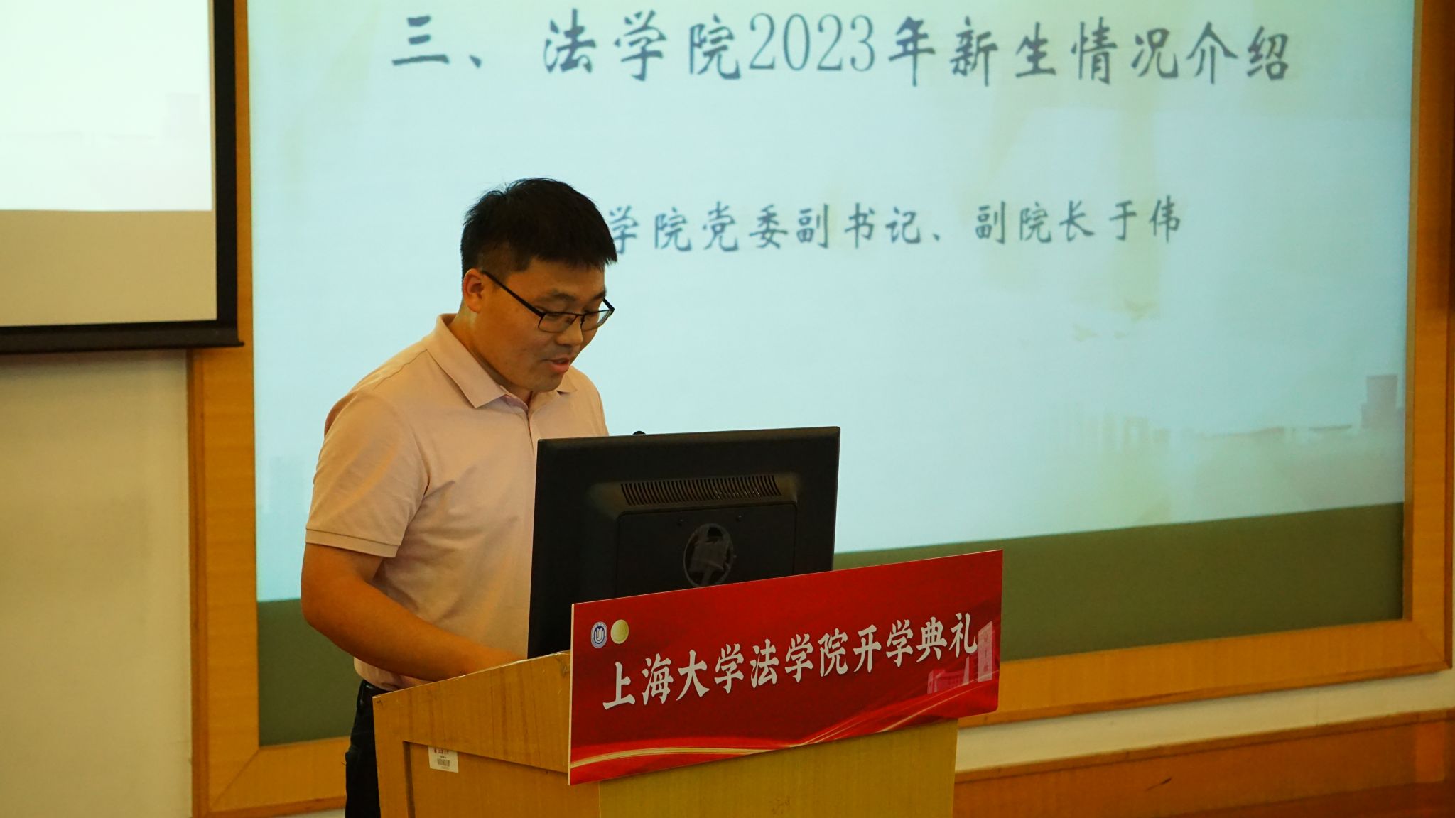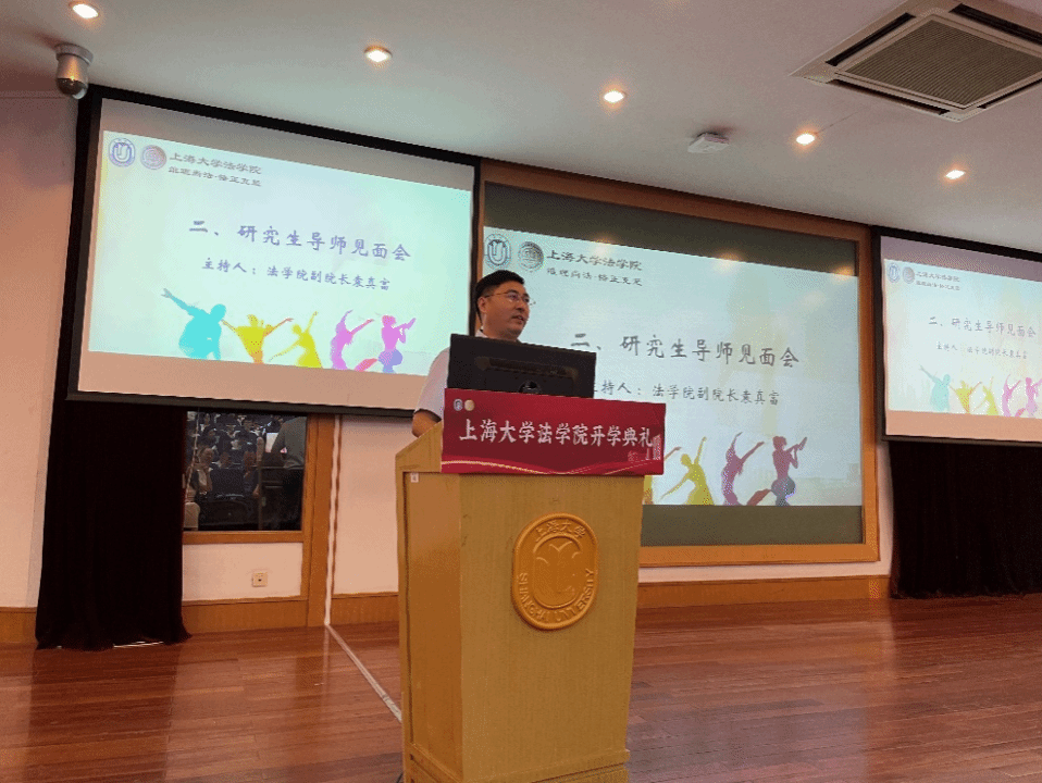 在这秋风送爽,硕果飘香的季节,太阳成集团tyc33455cc本研师生欢聚一堂 ,于9月1日下午,在宝山校区J202方润华讲堂隆重举行了2023年新生开学典礼暨研究生导师见面会。公司党委书记徐国明老师,太阳成集团tyc33455cc经理李凤章老师、公司党委副书记副经理于伟老师、太阳成集团tyc33455cc副经理袁真富老师、优秀员工代表、泰和泰(上海)律师事务所律师、高级合伙人应莹律师、泰和泰(上海)律师事务所专家顾问谢云泽律师,学院全体教师和新生参加。开学典礼由2023届硕士研究生连顺祥主持。