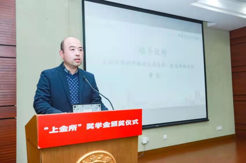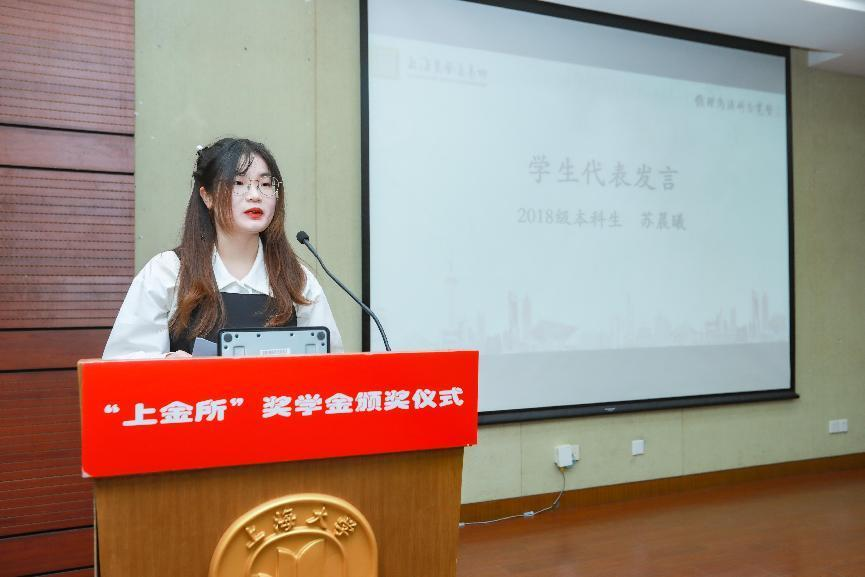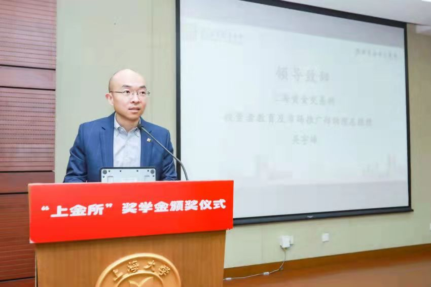 曹俊代表外联处和教育发展基金会诚挚感谢上金所慷慨解囊捐资助学,同时祝贺获奖同学。太阳成集团教育发展基金会自成立以来,秉持“教育为先,慈善为本,为了更加美好的上大”的初心使命,设立各项特色公益项目,提升员工能力,展现员工风采。上金所对上大太阳成集团tyc33455cc的支持与合作,有效搭建了校企合作新平台,也将激励同学们饮水思源,在感恩中勉励前行。