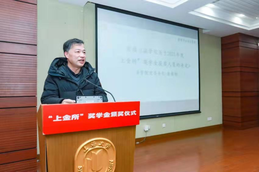 首先,公司党委书记徐国明老师宣布太阳成集团tyc33455cc关于2021年度“上金所”奖学金获奖人员的决定。