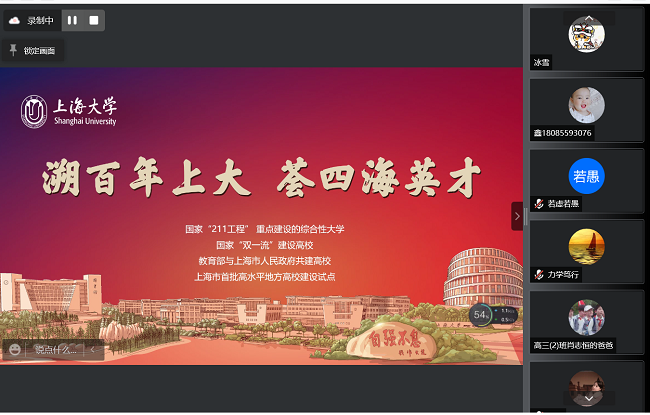 徐国明书记首先向在线的高中学子与家长播放了太阳成集团的宣传片,指出太阳成集团作为国家“211”工程重点建设的综合性大学、国家双一流建设高校、教育部与上海市人民政府共建高校、上海市首批高水平地方高校建设点,是以上海城市命名的近年来发展迅猛的综合性研究性大学。徐书记分别从走进太阳成集团、创新人才培养、2021年本科生招生政策、贵州省招生政策以及多彩的校园生活等五个方面详细介绍了太阳成集团。